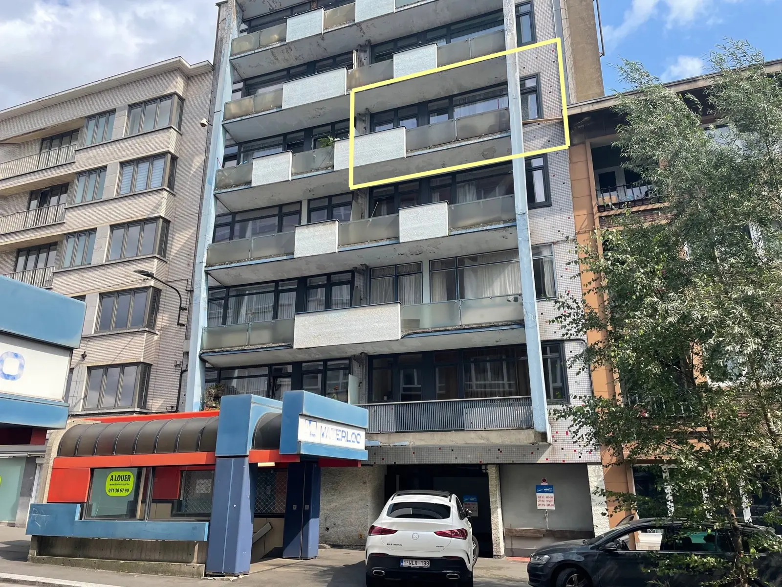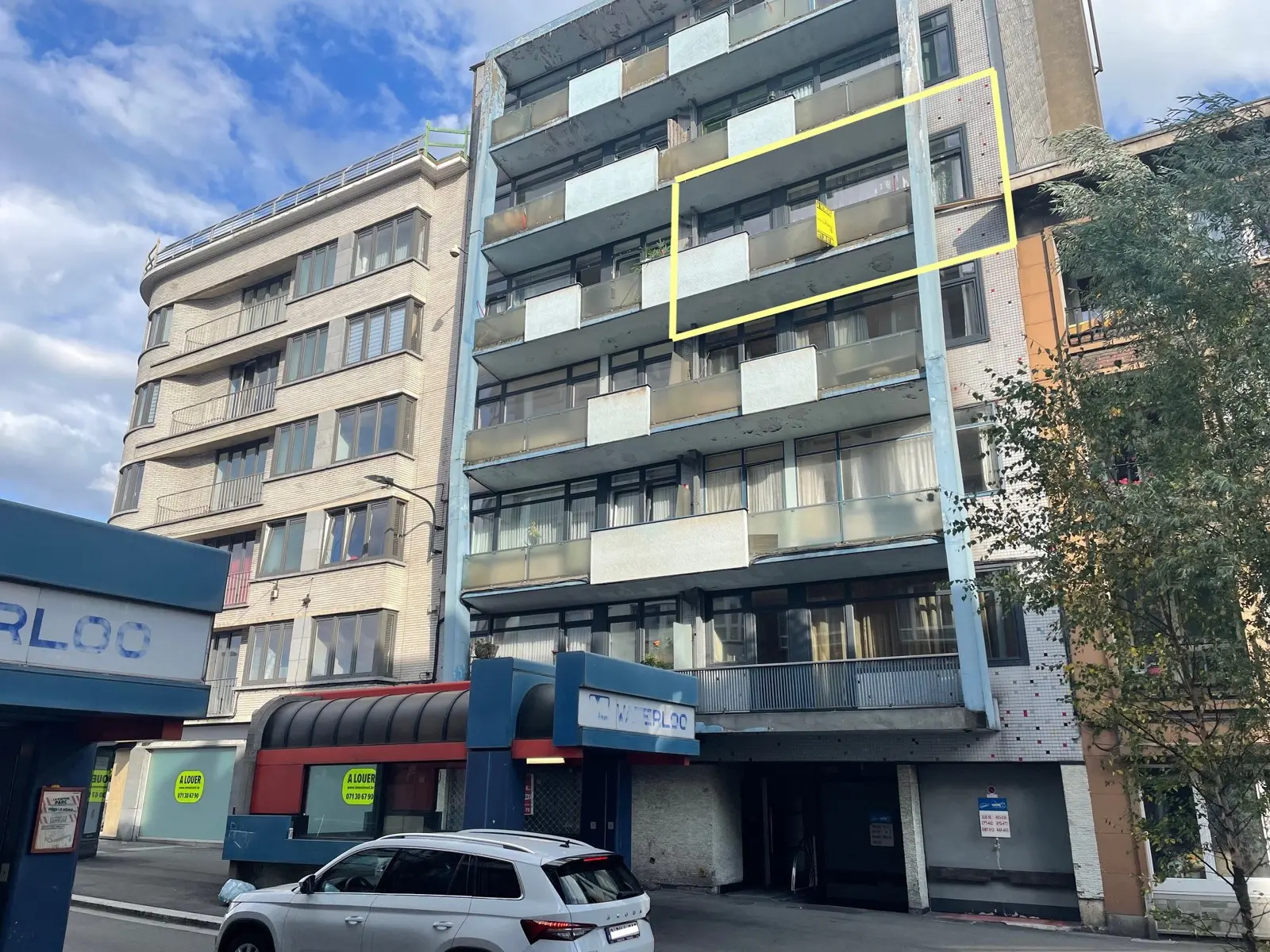 Appartement au 4ème étage comprenant : Hall d'entrée, vestiaire-placard, wc individuel, living de 30 m², cuisine équipée donnant sur un balcon en façade avant, hall de nuit, salle de bain avec baignoire-douche et coin buanderie, 2 grandes chambres, balcon arrière.