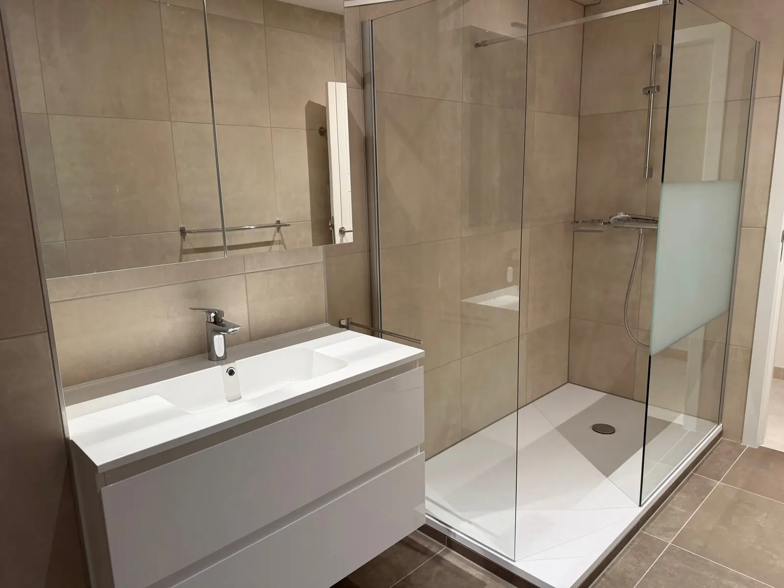 1 chambre, 1 chambre avec dressing, salle de bain avec douche.
