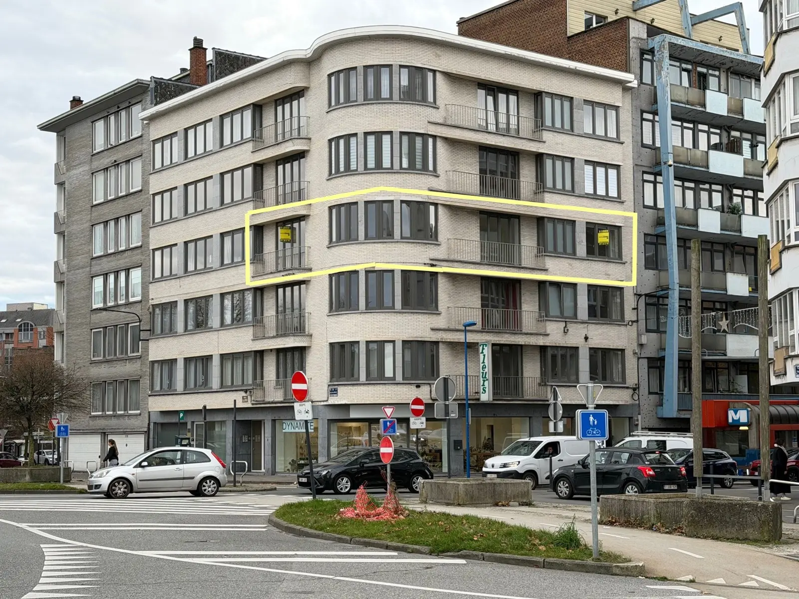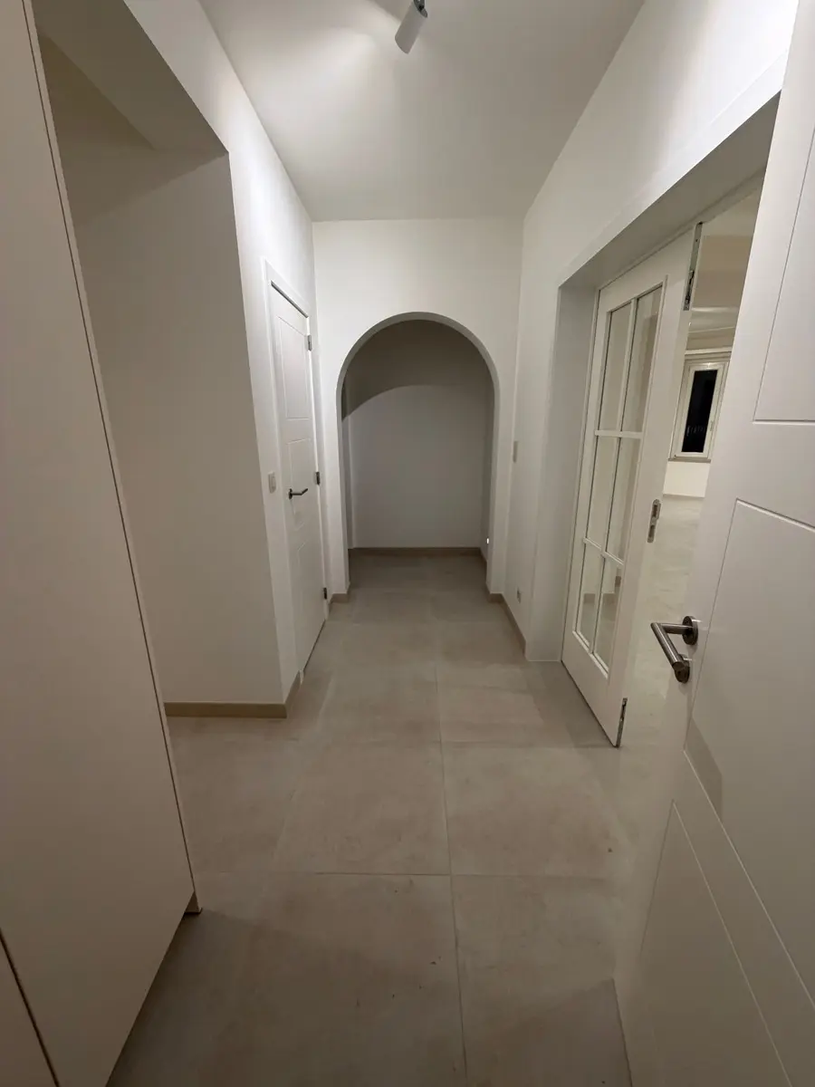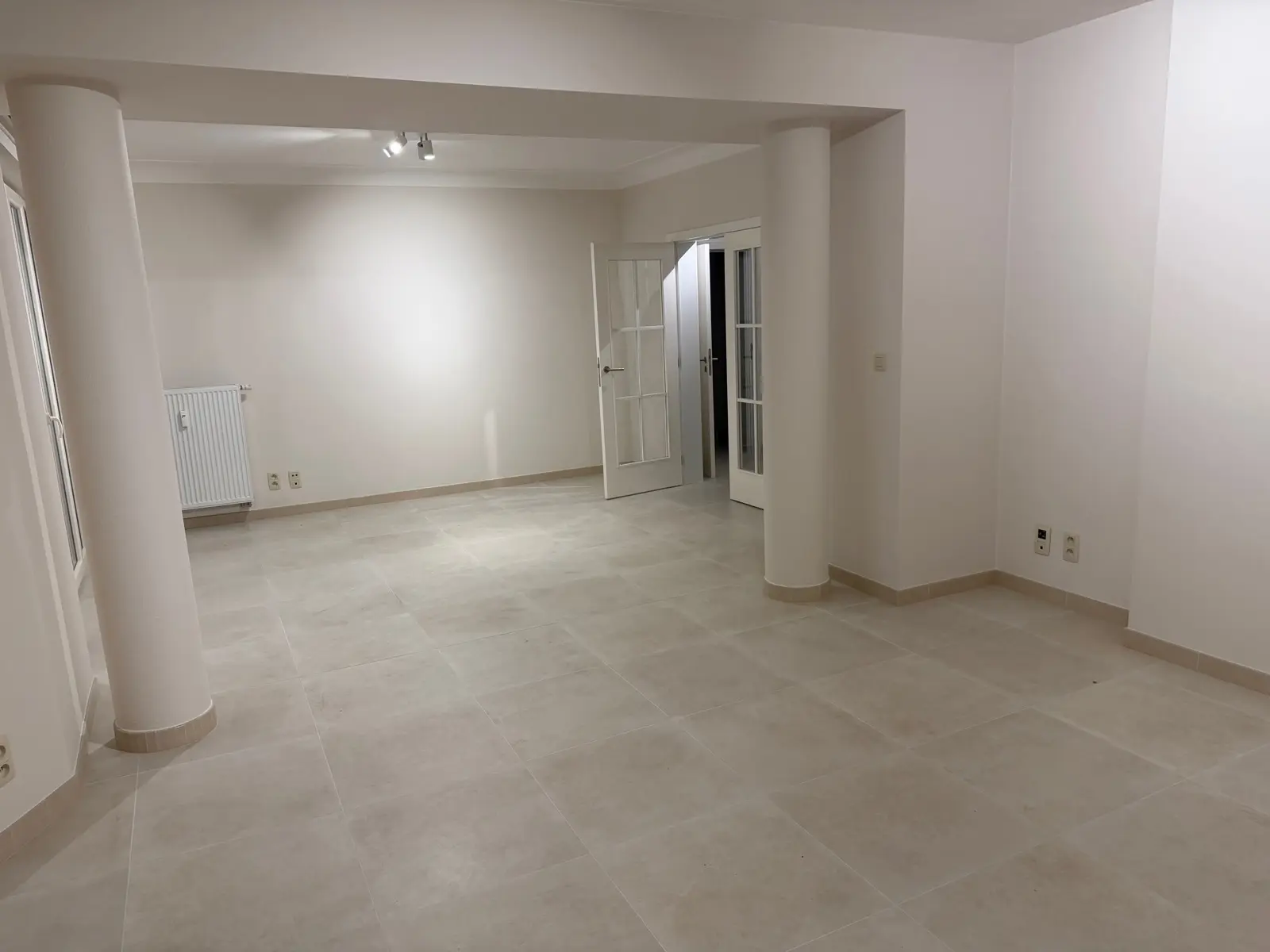 Appartement comprenant : hall d'entrée, wc individuel, cuisine équipée, buanderie, living en rotonde, hall de nuit