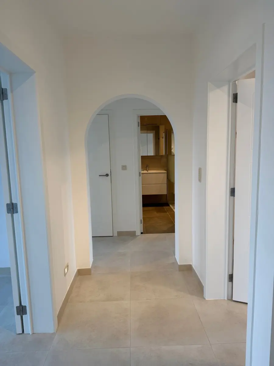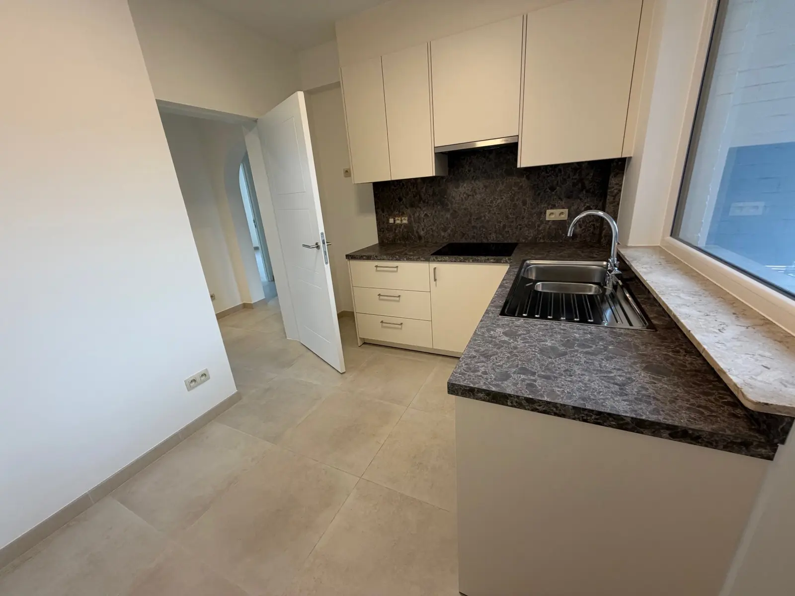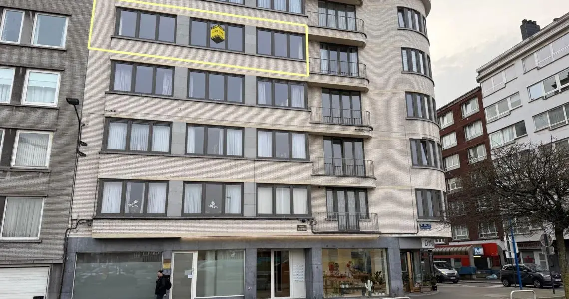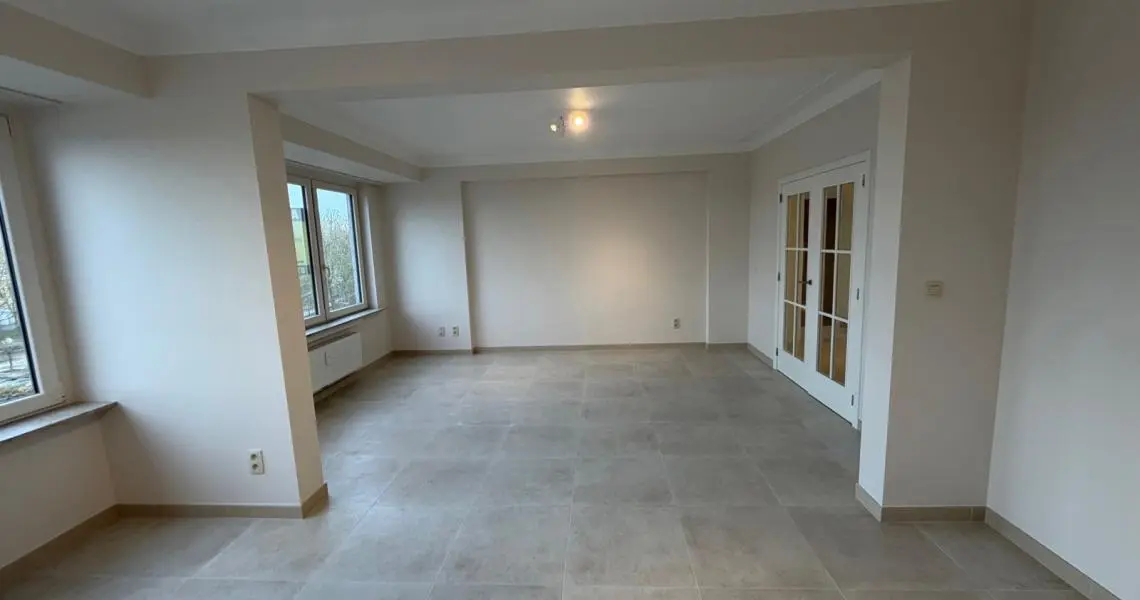 Appartement comprenant : hall d'entrée, living (40 m²), cuisine équipée donnant sur terrasse arrière, hall de nuit, wc individuel,