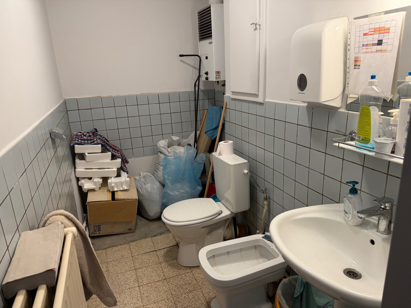 Hall d'entrée, placard-penderie, wc individuel, living 45 m² (mur séparatif à ouvrir) donnant sur une terrasse 10m², salle de bain avec douche à installer + wc, 3 chambres.