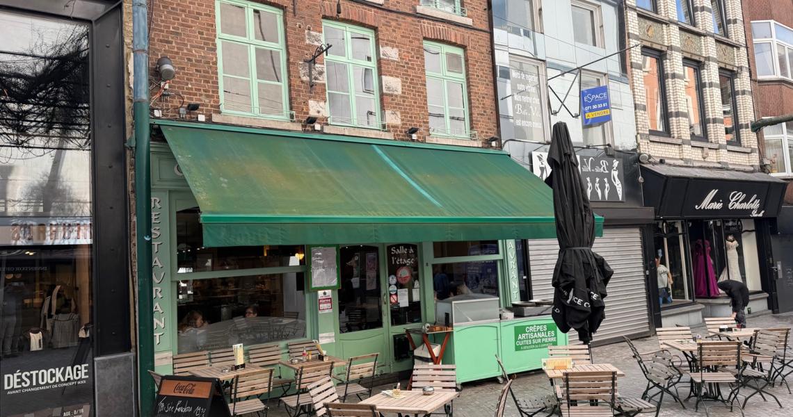 Cuisine professionnelle, four, 2x4 becs cuisinière, 3 friteuses, 1 plancha, 1 chambre froide, 1 lave-vaisselle, 1 congélateur, 1 congélateur à glaces, 1 sous-videuse, 1 salamante, tables + chaises + banquettes - 1 machine à glaçons, 1 frigo comptoir ''américain'', 1 comptoir, marquise télécommandée. ''Spécialité crêpes et américain minute''.