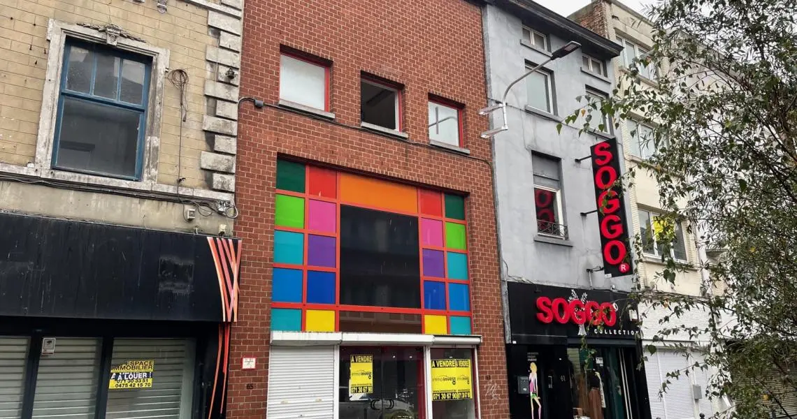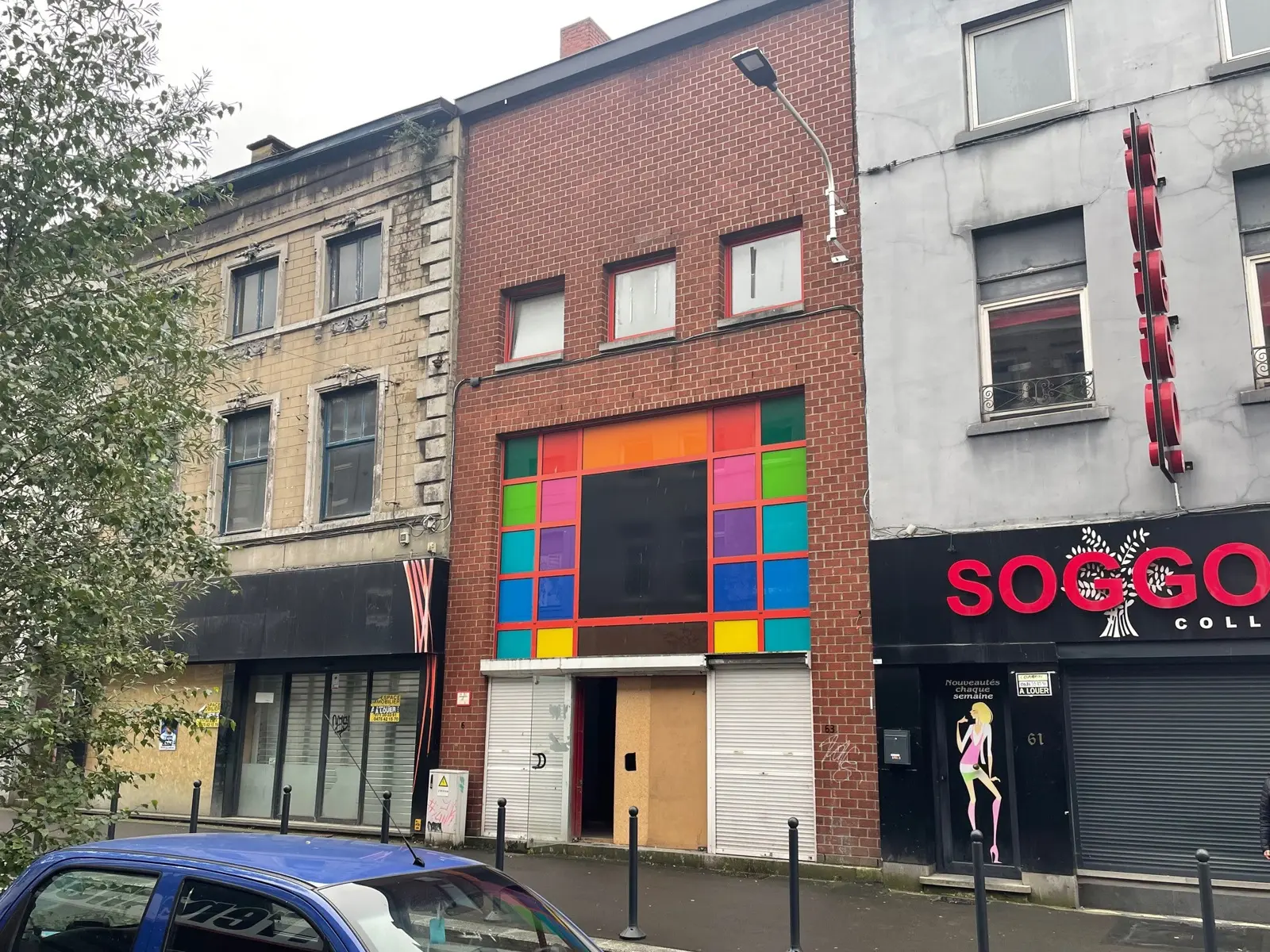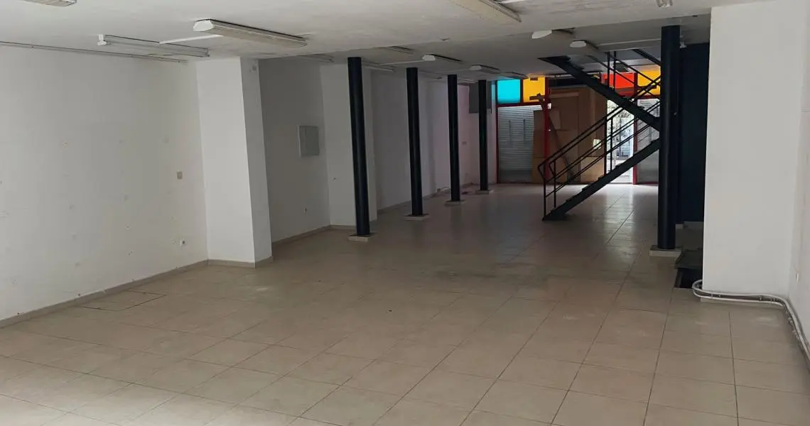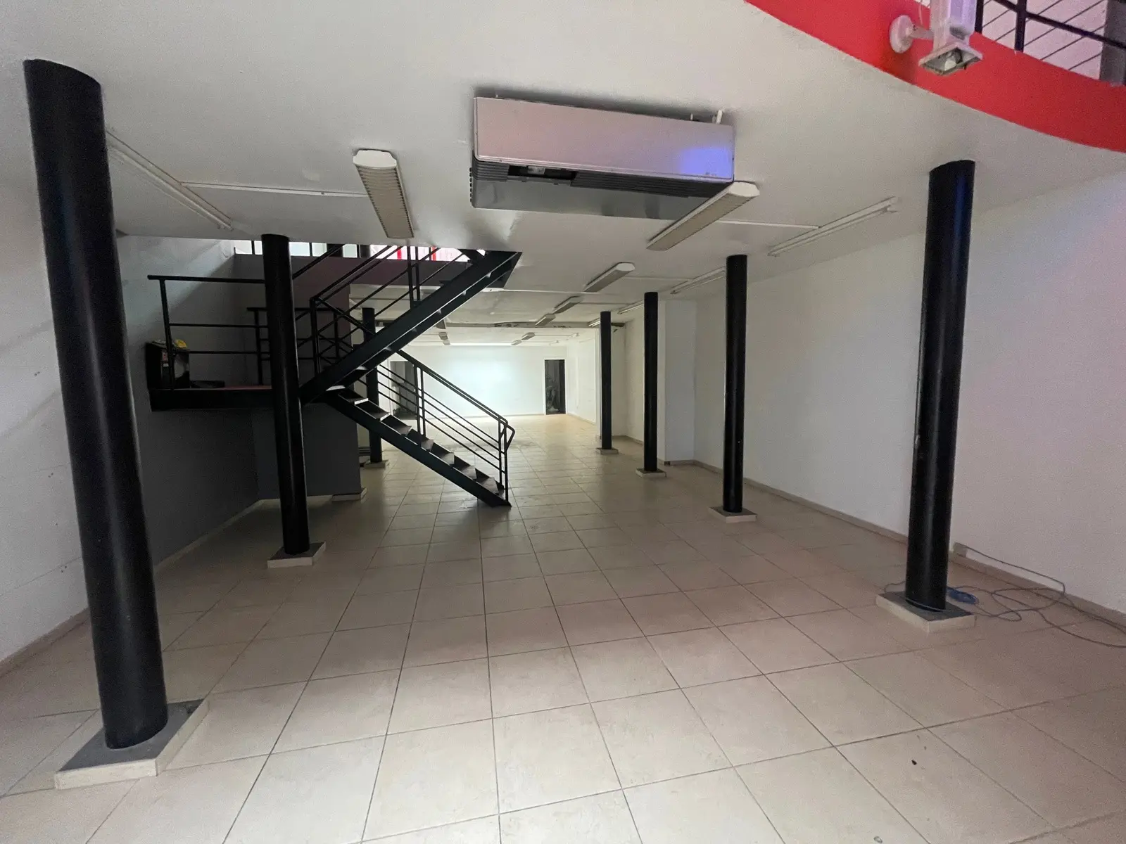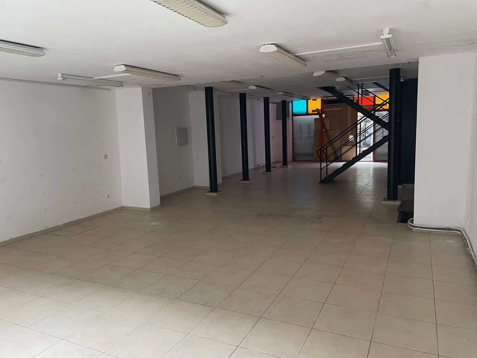 Rez-de-chaussée commercial (120 m²) avec sanitaires et coin cuisine.