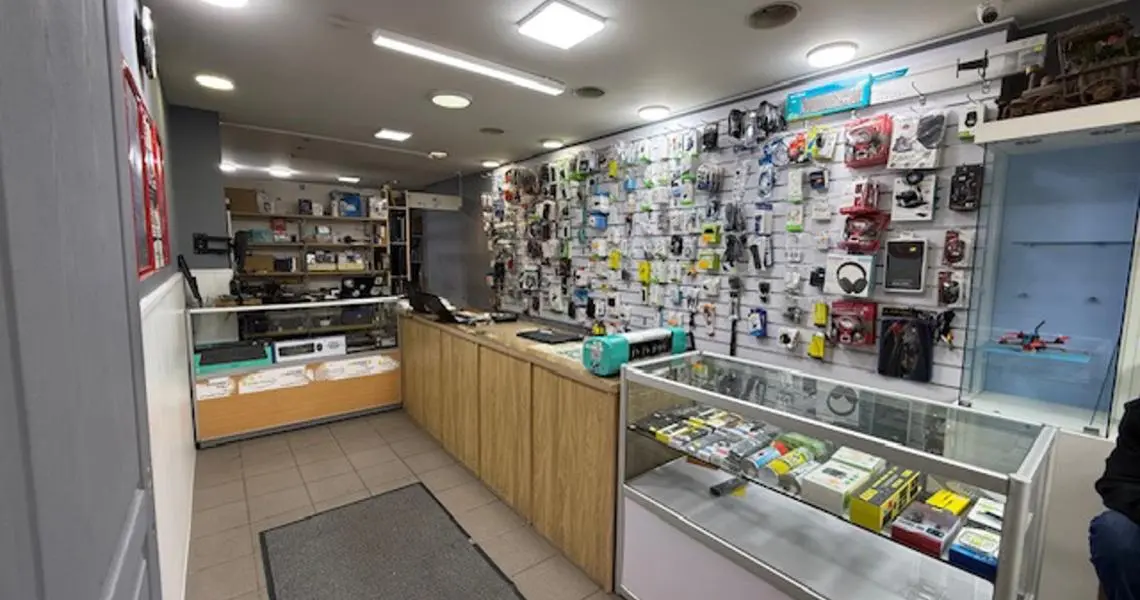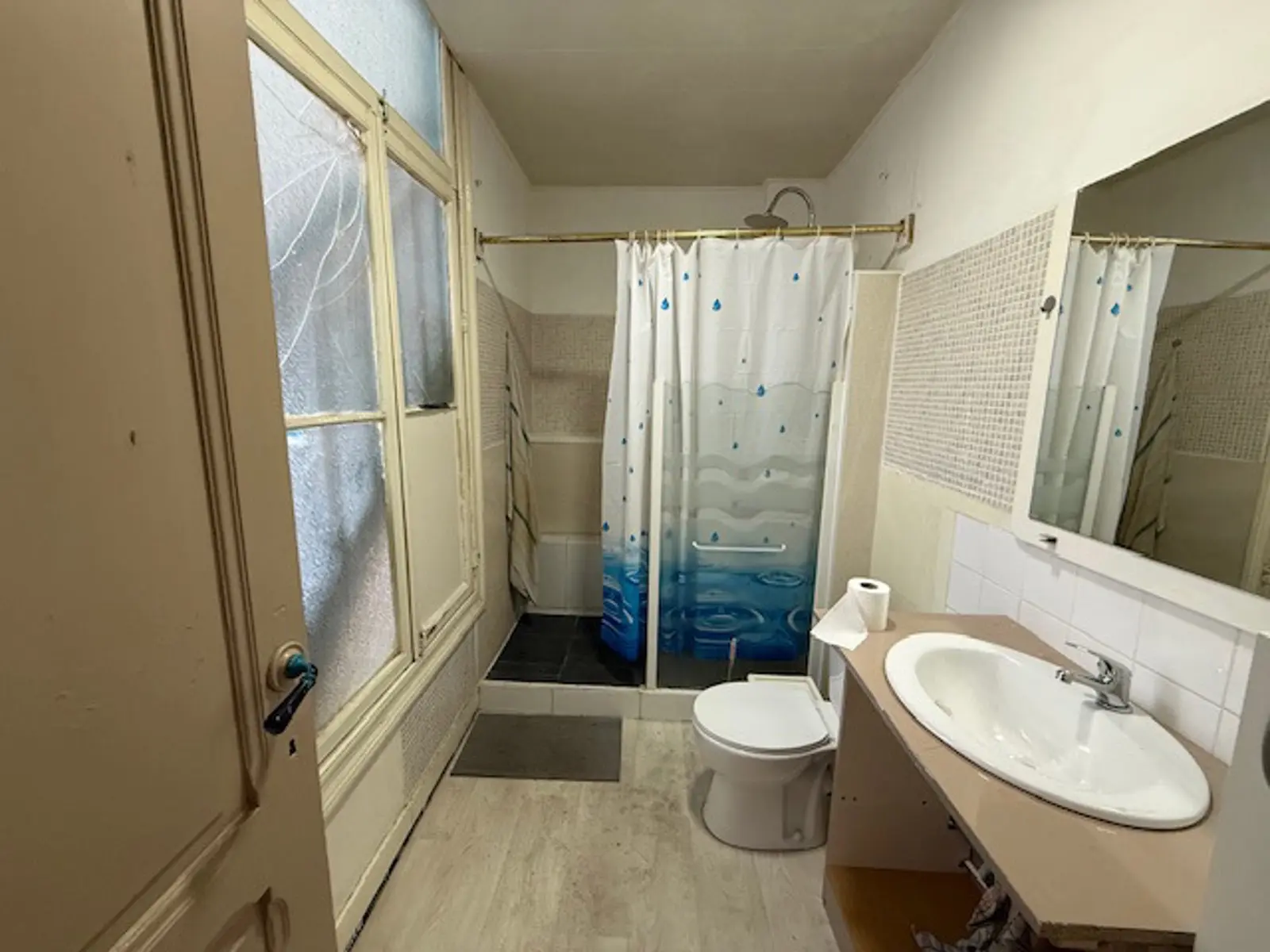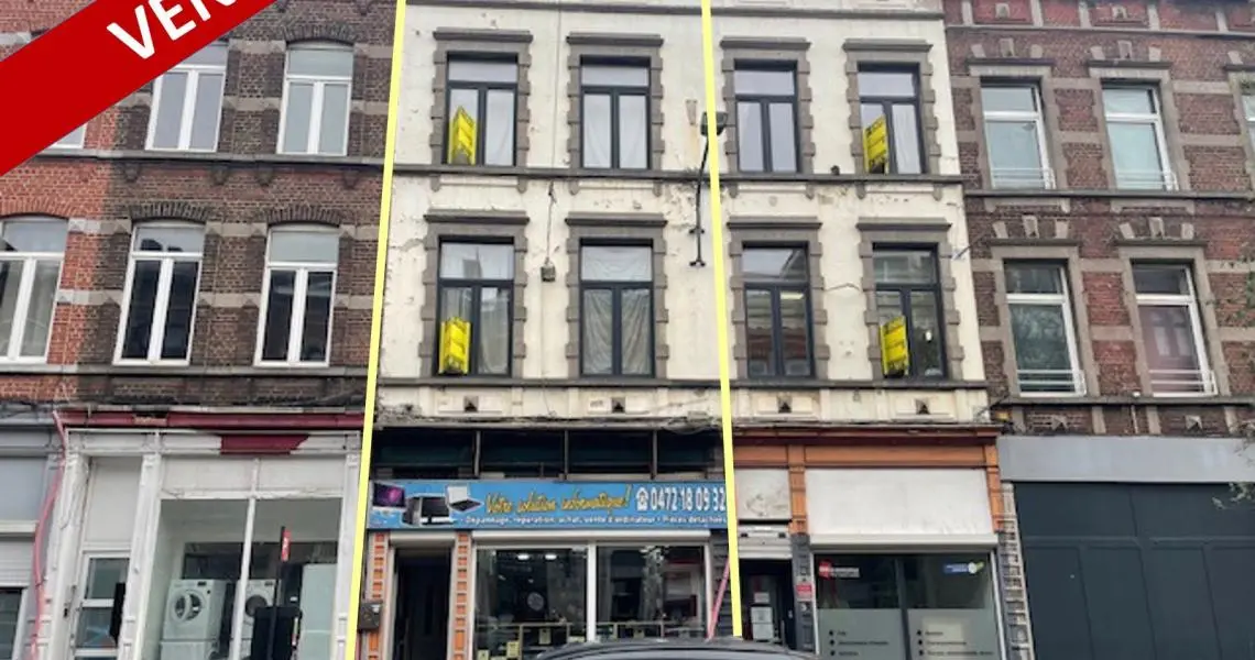 Rez-de-chaussée commercial : atelier vente (40m²) vente et réparation informatique, 2 pièces arrière (20m² + 16m²), wc individuel.