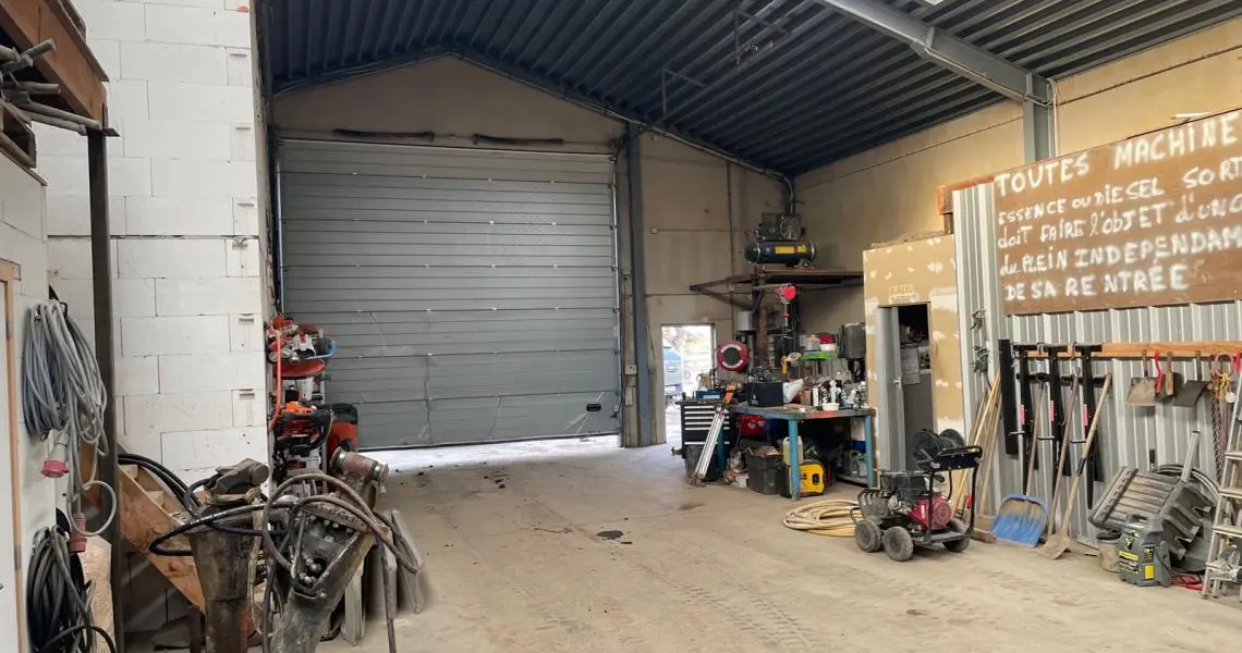 1) Entrepôt 360 m² avec sanitaires et coin bureau (accès avant et arrière) équipé triphasé