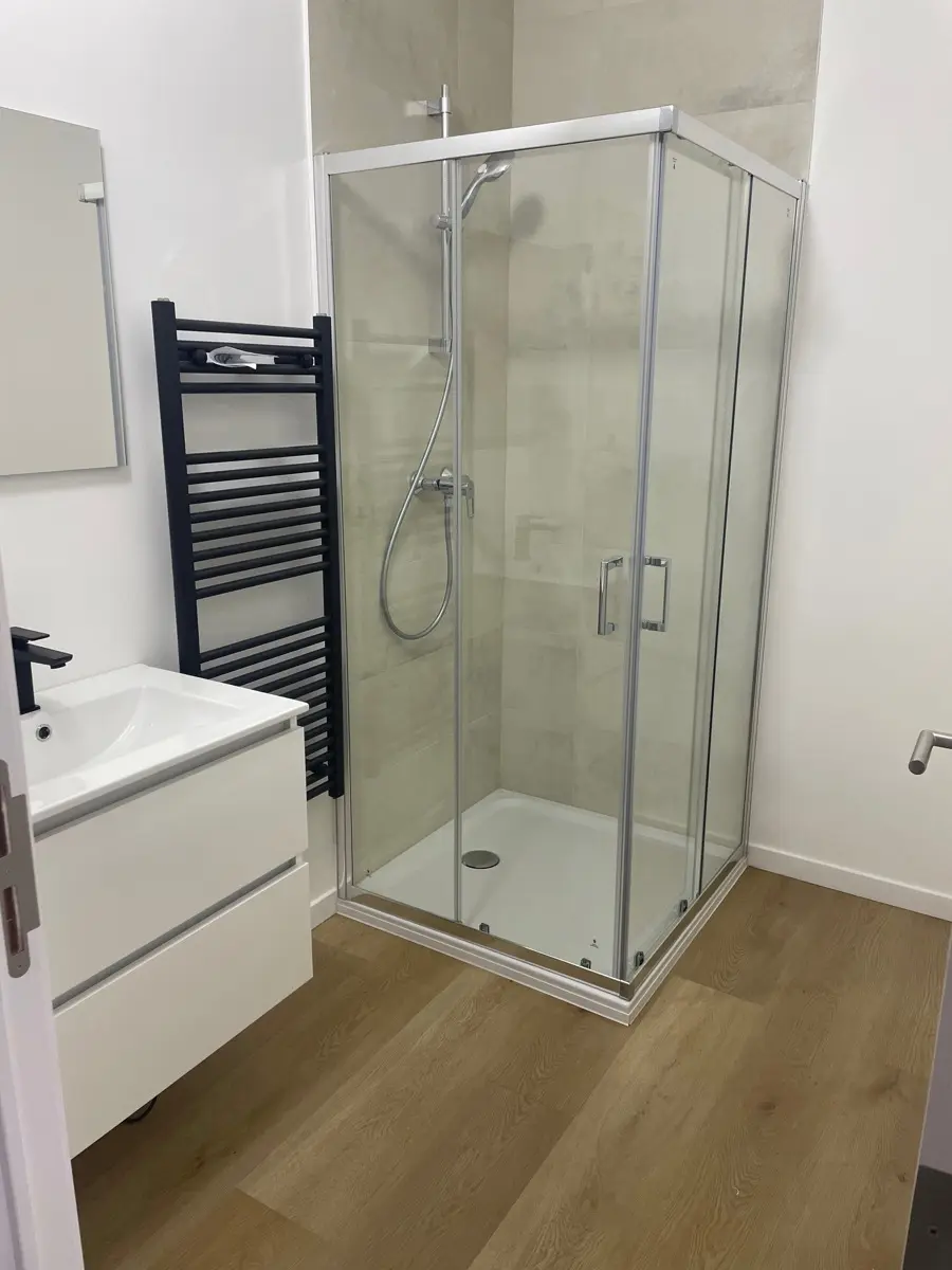 Etage : 1 grande chambre, 1 chambre, 1 salle de bain avec douche.
