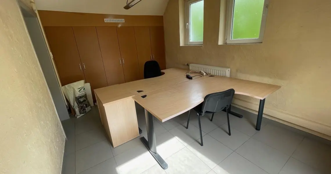 Etage : hall, wc individuel, bureau salle de réunion 30m², bureau 45 m² avec meubles sur mesure, bureau 20 m².