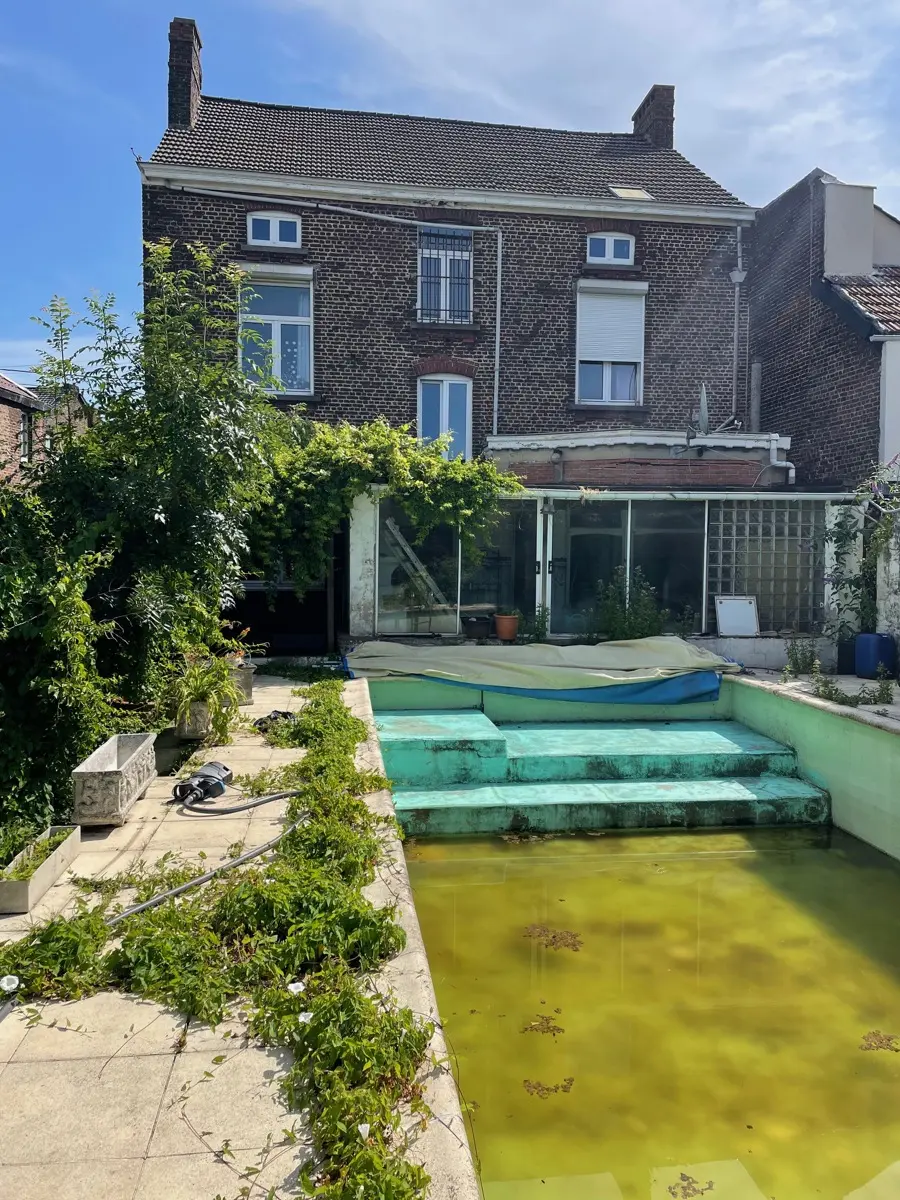 Equipements : piscine (10x4) - pompe à chaleur, terrasse, jardin 6 ares, passage latéral, 4 caves, chauffage central au mazout, châssis double vitrage en PVC blanc, possibilité acquérir le garage en face.