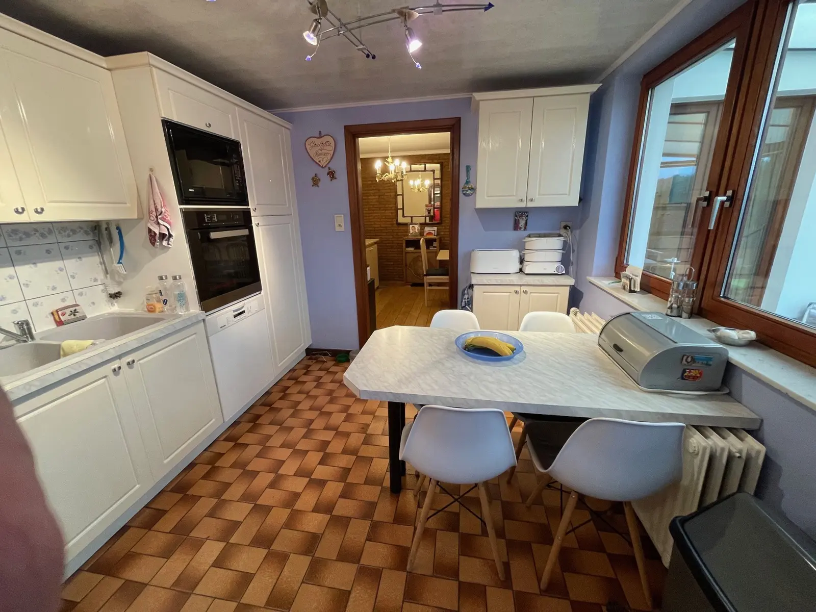 Equipements : chauffage central au mazout, caves carrelées, garage, passage latéral, châssis double vitrage, terrasse 10 m², jardin 3 ares, abri de jardin, buanderie en sous-sol.