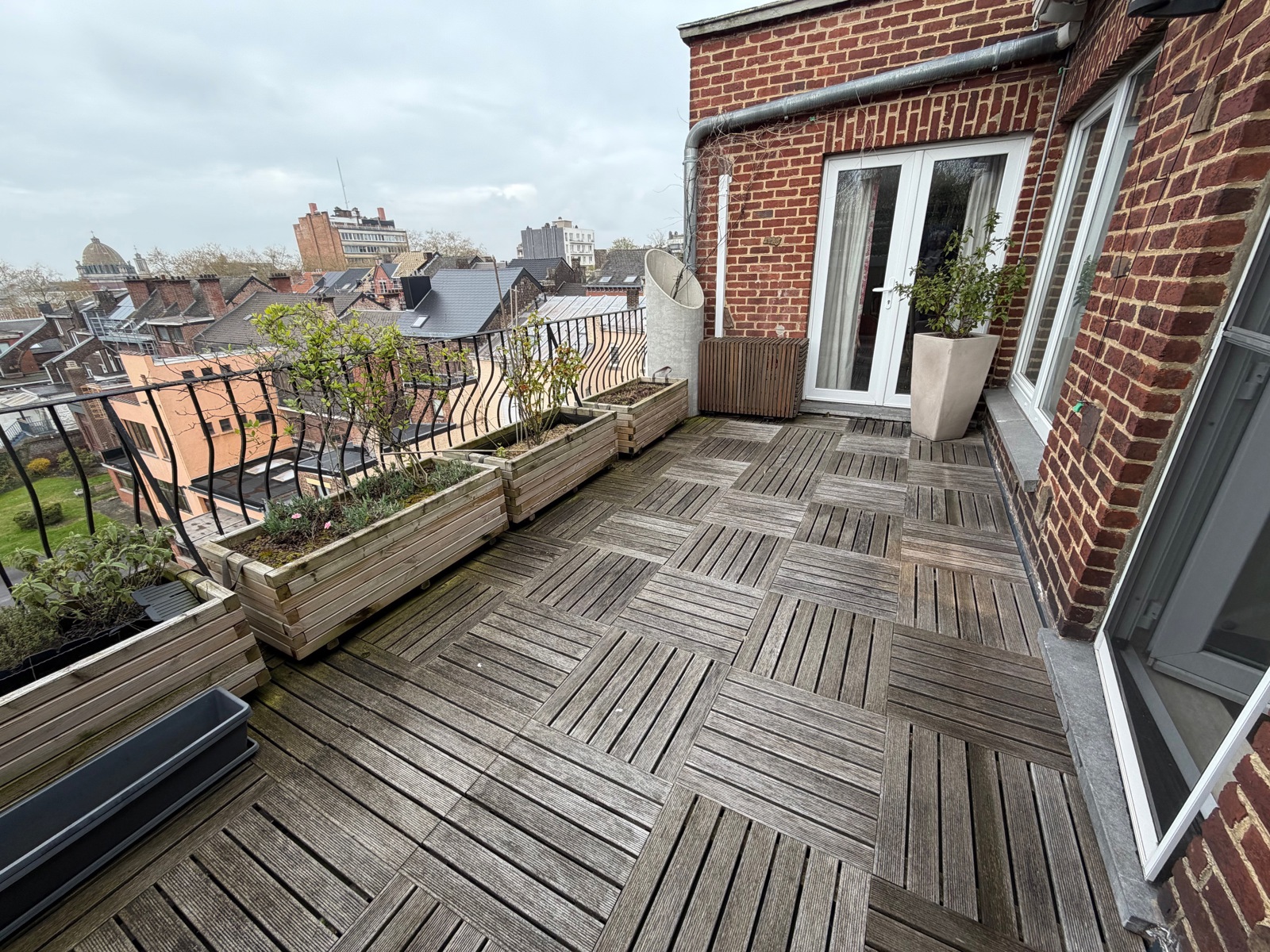 Appartement 4ème étage comprenant : hall d'entrée, living (70 m²), cuisine-équipée, 1 wc individuel, 1 salle de bain avec douche à l'italienne,