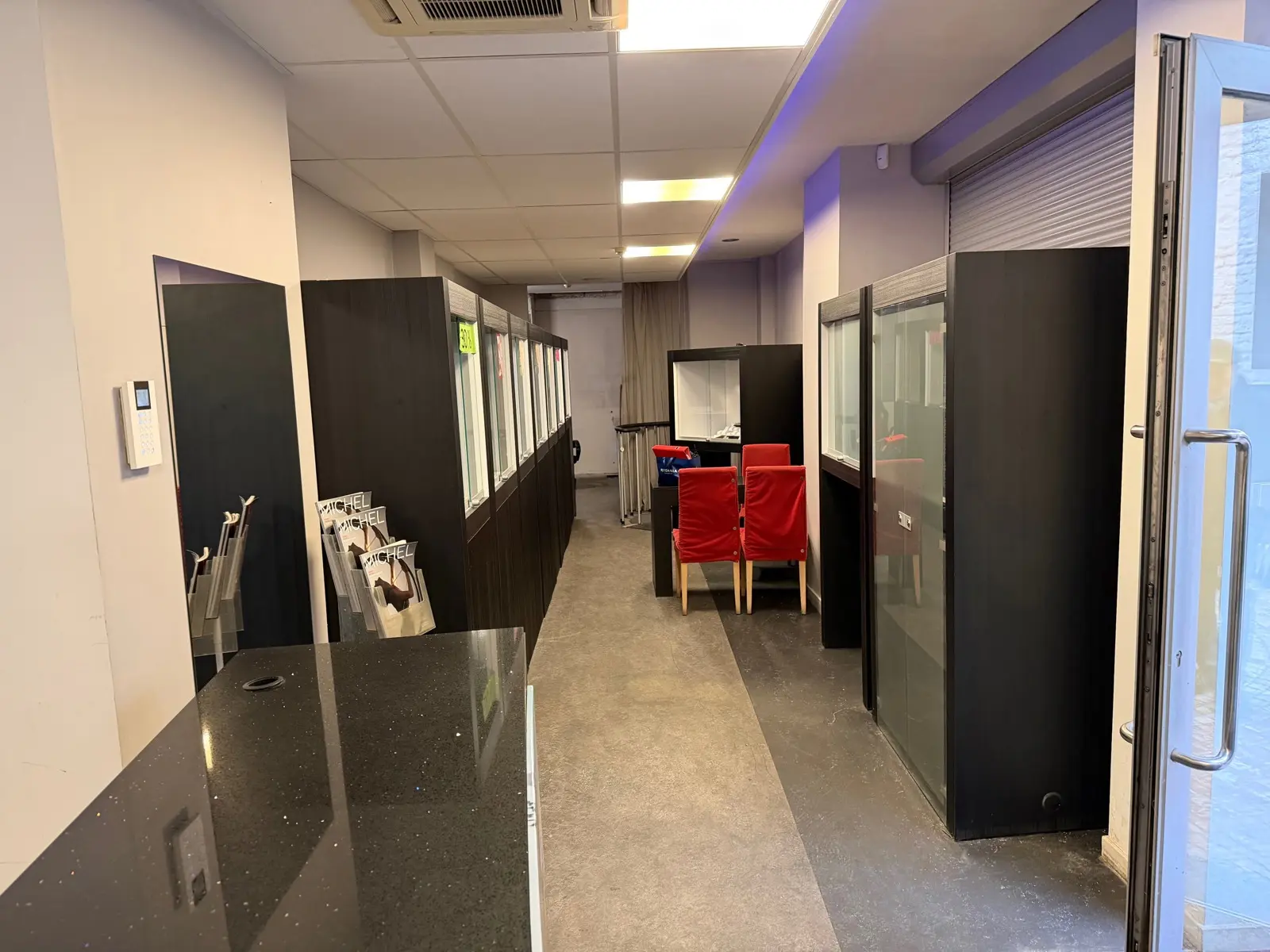 Commodités : châssis alu double vitrage + volets électriques avec télécommande, air conditionné chaud - froid, système d'alarme, wc individuel, coin cuisine, coffre-fort.