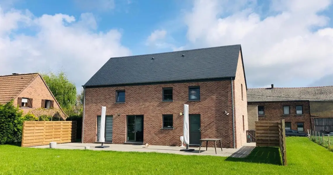 Rez-de-chaussée : Hall d’entrée, coin vestiaire, WC individuel, living en L de 40 m², cuisine équipée USA avec coin à manger, buanderie.